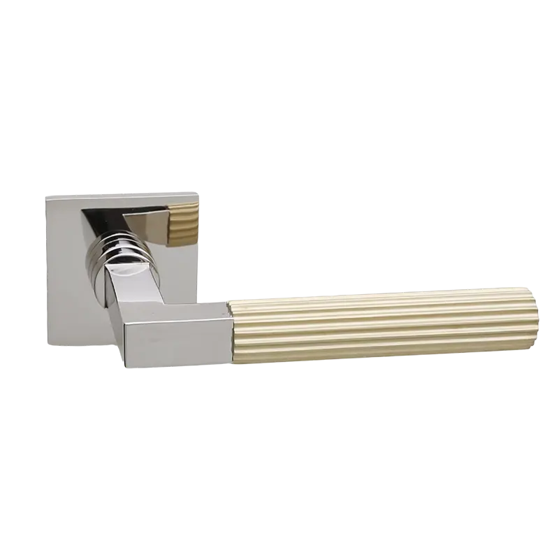 Deurkruk Modul Bauhaus Linear nikkel/ matgoud PVD op dun vierkant geveerd rozet