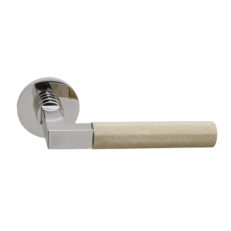 Deurkruk Modul Bauhaus Struktur nikkel/ matgoud PVD op dun rond geveerd rozet