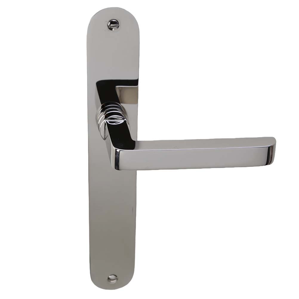 Deurkruk Poelzig nikkel op haaks geveerd schild blind