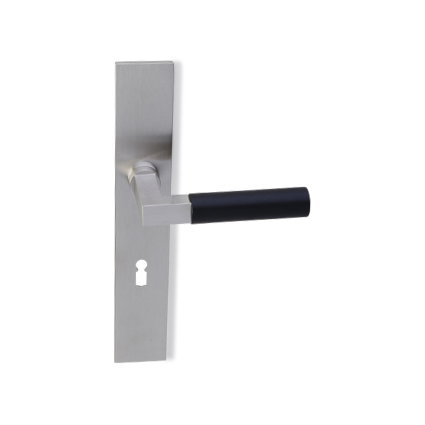 Deurkruk Bauhaus matnikkel/ebben op haaks geveerd schild met sleutelgat