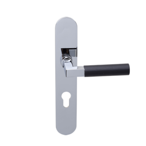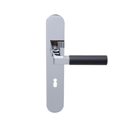 Deurkruk Bauhaus chroom/ebben op ovaal geveerd schild met sleutelgat