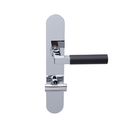 Deurkruk Bauhaus chroom/ebben op haaks geveerd schild met sleutelgat