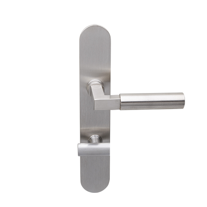 Deurkruk Bauhaus matnikkel/ebben op haaks geveerd schild vrij- en bezet uitvoering