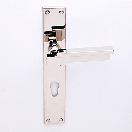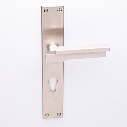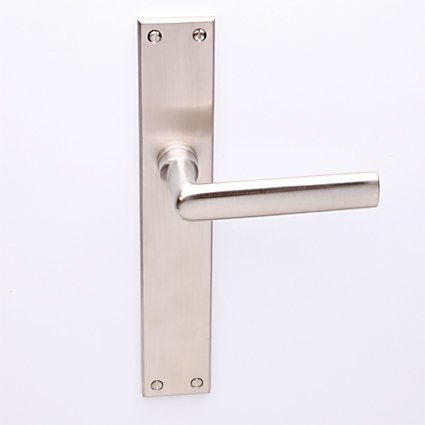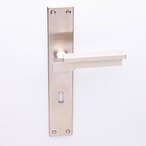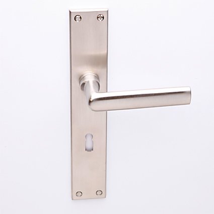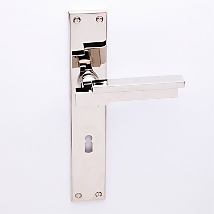 Deurkruk Dessau nikkel op Bauhaus schild met sleutelgat