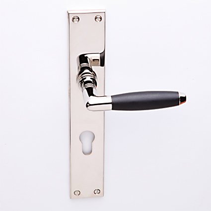 Deurkruk Ton nikkel/ebben op Bauhaus schild met sleutelgat