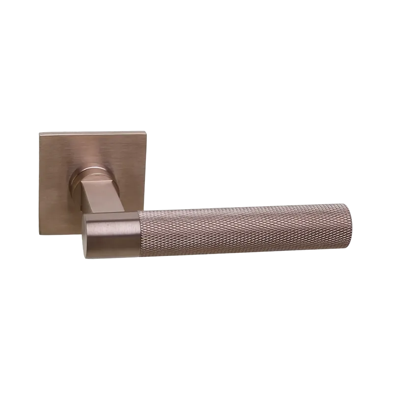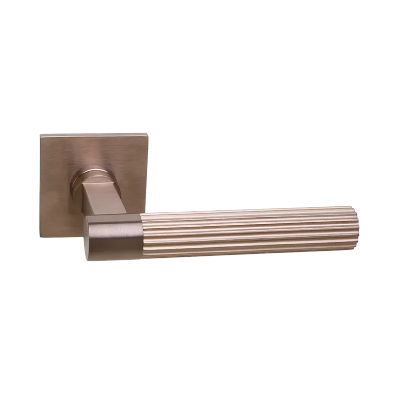 Deurkruk Modul Bauhaus Struktur matbrons PVD op dun vierkant geveerd rozet