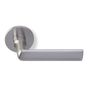 Deurkruk Poelzig matnikkel op dun rond geveerd rozet