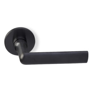 Deurkruk Poelzig carbon PVD op dun rond geveerd rozet
