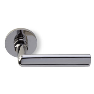 Deurkruk Poelzig nikkel op dun rond geveerd rozet