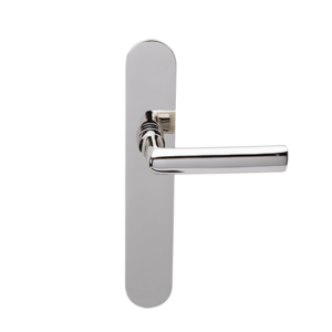 Deurkruk Poelzig nikkel op haaks geveerd schild blind