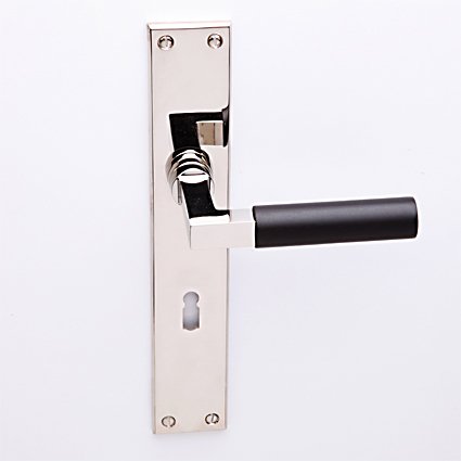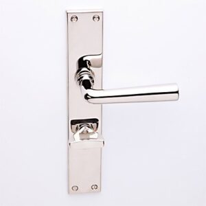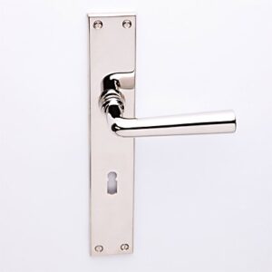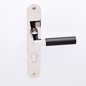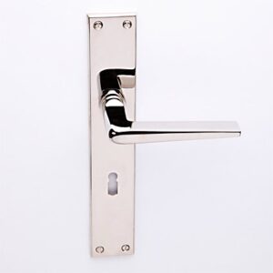 Deurkruk München nikkel op Bauhaus schild met sleutelgat