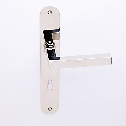 Deurkruk Burchartz nikkel op ovaalschild met sleutelgat