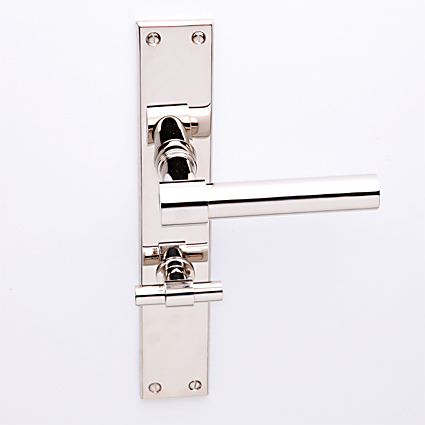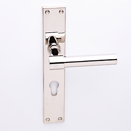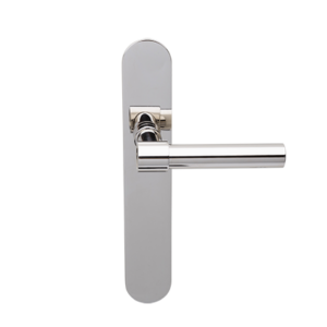 Deurkruk Poelzig nikkel op haaks geveerd schild blind