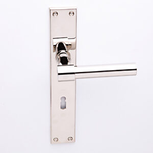 Deurkruk Weimar L-model nikkel op Bauhaus schild met sleutelgat