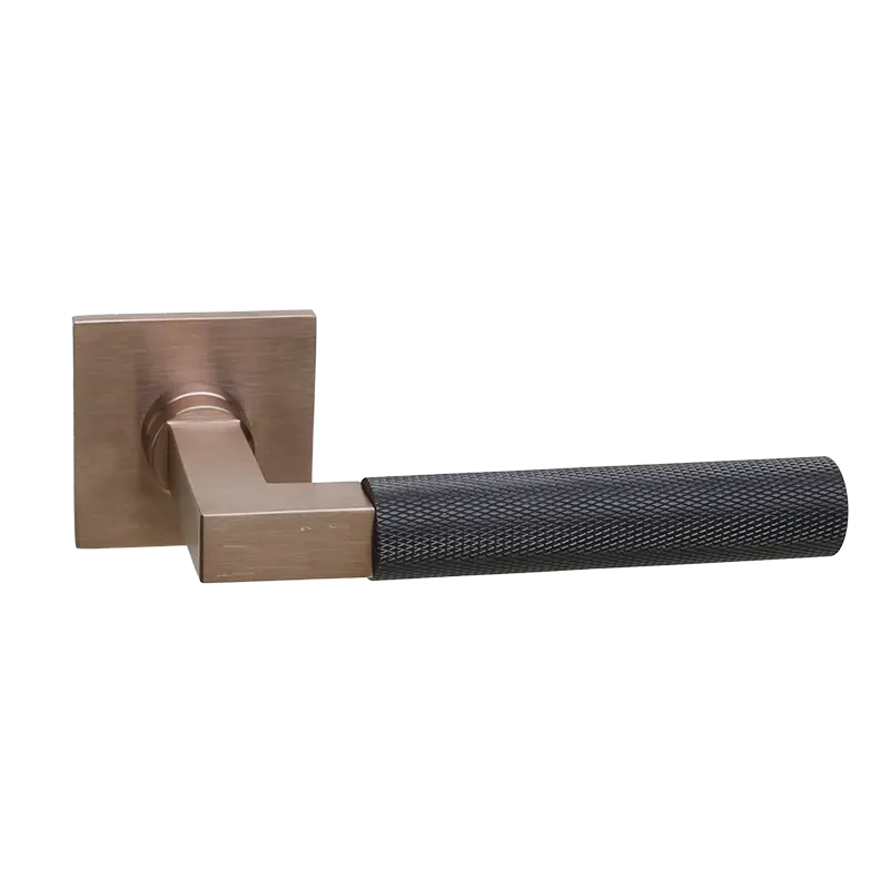 Deurkruk Modul Bauhaus Struktur matbrons PVD op dun vierkant geveerd rozet
