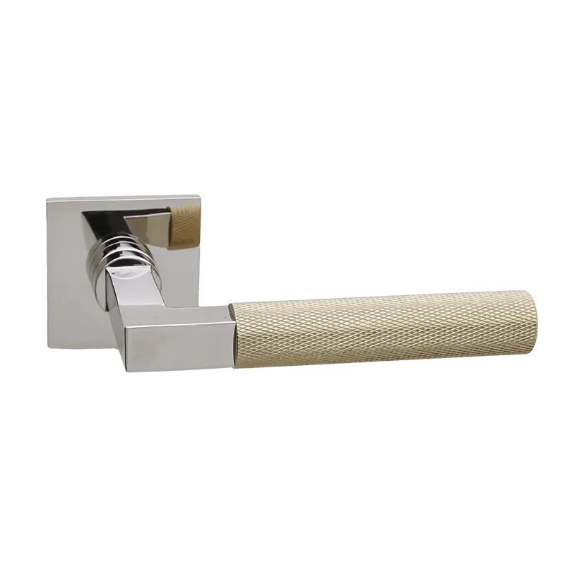 Deurkruk Modul Bauhaus Struktur nikkel/ matgoud PVD op dun vierkant geveerd rozet