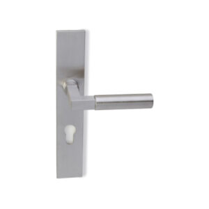 Deze bekende deurkrukken in Bauhaus stijl worden per paar op haakse blind gemonteerde geveerde schilden geleverd.