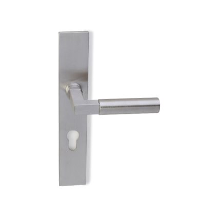 Deurkruk Bauhaus matnikkel op haaks geveerd schild blind