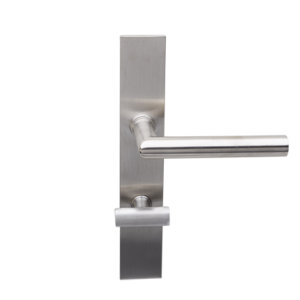 Deurkruk Berlin matnikkel op haaks geveerd schild met sleutelgat