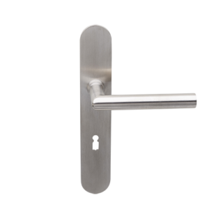 Deurkruk Berlin matnikkel op ovaal geveerd schild met sleutelgat
