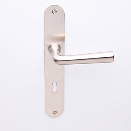 Deze verfijnde deurkrukken in Bauhaus stijl worden per paar op afgeronde blindschilden geleverd.