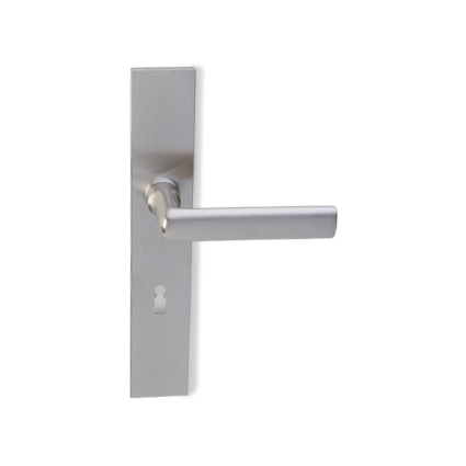 Deze robuuste deurkrukken van Hans Poelzig worden per paar op haakse blind gemonteerde geveerde schilden geleverd.