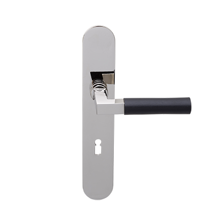 Deze bekende deurkrukken in Bauhaus stijl worden per paar op ovaal blind gemonteerde geveerde schilden geleverd. Wegens het ebbenhout niet geschikt voor buitengebruik.