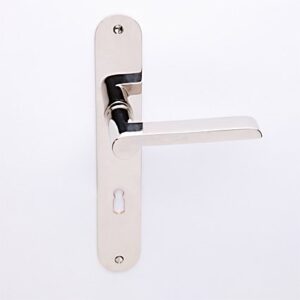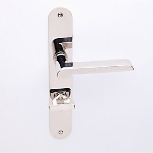 Deze elegante jaren 30 deurkrukken in Bauhaus stijl worden per paar op afgeronde blindschilden geleverd.
