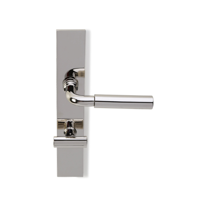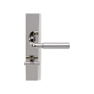 Deze subtiele jaren 30 deurkrukken in Bauhaus stijl worden per paar op haakse blind gemonteerde geveerde schilden geleverd.