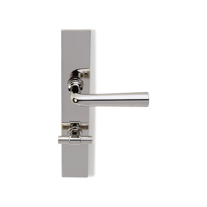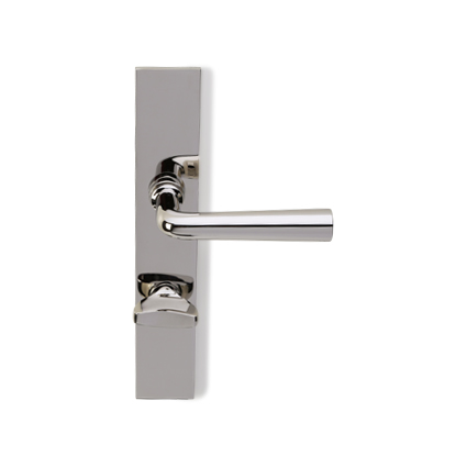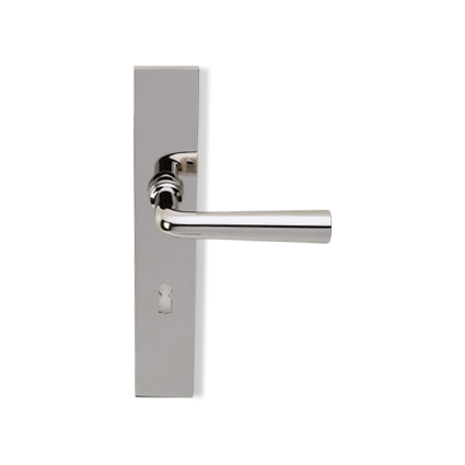 Deze verfijnde deurkrukken in Bauhaus stijl worden per paar op haakse blind gemonteerde geveerde schilden geleverd.