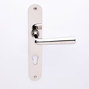 Deze verfijnde deurkrukken in Bauhaus stijl worden per paar op afgeronde blindschilden geleverd.
