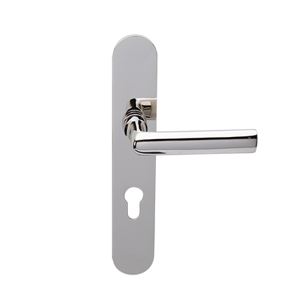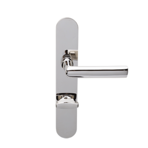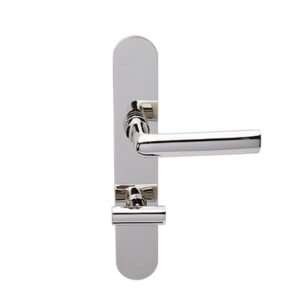 Deze robuuste deurkrukken van Hans Poelzig worden per paar op ovale blind gemonteerde geveerde schilden geleverd.