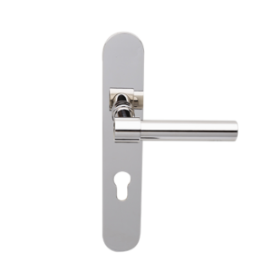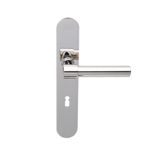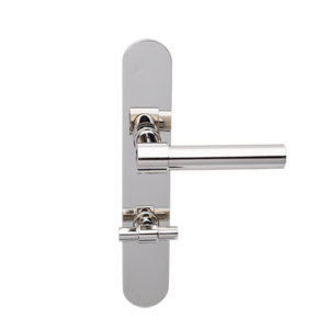 Deurkruk Weimar L-model nikkel op ovaal geveerd schild blind