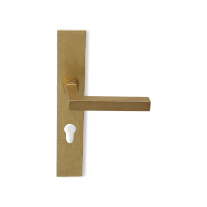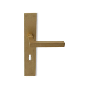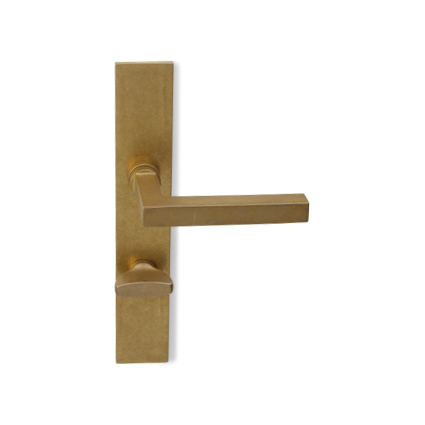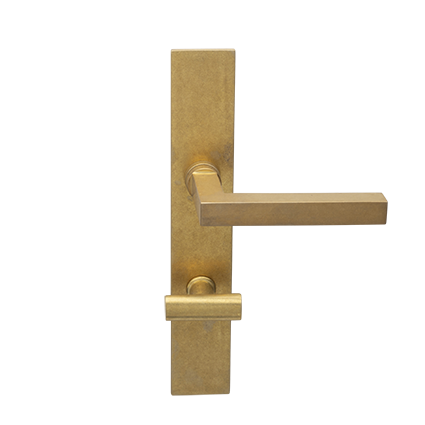 Deurkruk Loevy oud messing op haaks geveerd schild blind