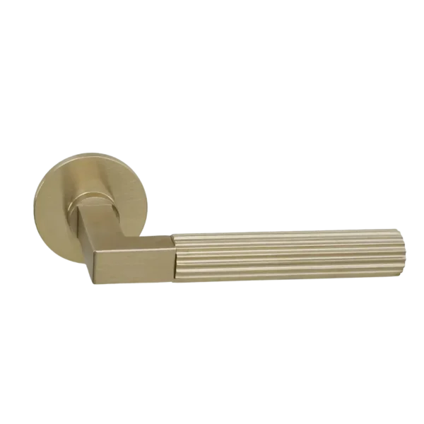 Deurkruk Modul Bauhaus Linear matgoud PVD op dun rond geveerd rozet