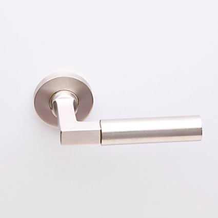 Deurkruk Bauhaus matnikkel op geveerd rozet rond