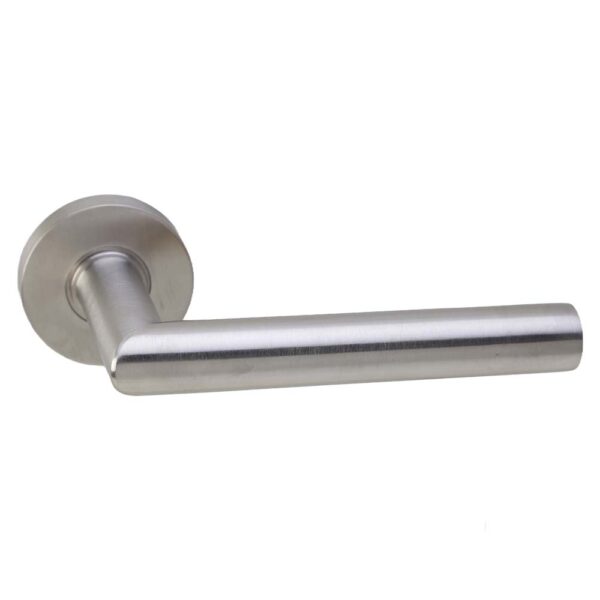 Tijdloos Bauhaus L-Model op rond geveerd rozet in matnikkel. Wordt per paar geleverd.