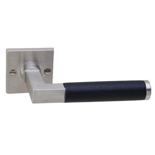 Deze bekende deurkrukken in Bauhaus stijl worden per paar op vierkante rozetten met doorgaande montage geleverd. Wegens het ebbenhout niet geschikt voor buitengebruik