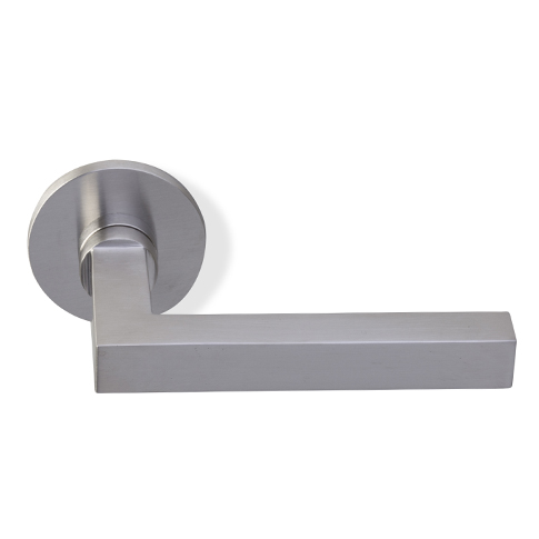 Deze strakke tijdloze deurkrukken worden per paar op dunne ronde geveerde rozetten geleverd