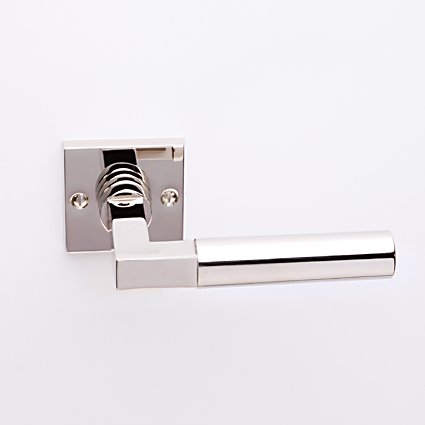 Deze bekende deurkrukken in Bauhaus stijl worden per paar op vierkante rozetten met doorgaande montage geleverd