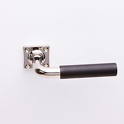 Deze subtiele jaren 30 deurkrukken in Bauhaus stijl worden per paar op vierkante rozetten geleverd, wegens het ebbenhout niet geschikt voor buitengebruik