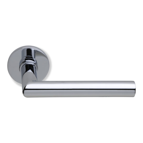 Tijdloos Bauhaus L-Model op dun rond geveerd rozet in chroom. Wordt per paar geleverd.
