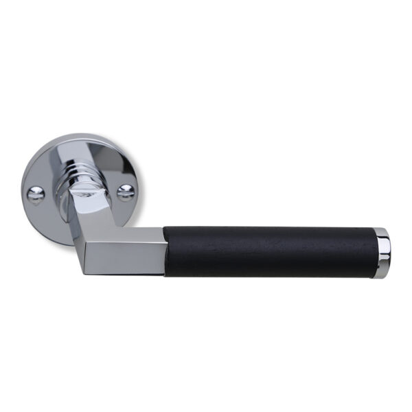 Deze bekende deurkrukken in Bauhaus stijl worden per paar op ronde rozetten geleverd. Wegens het ebbenhout niet geschikt voor buitengebruik.