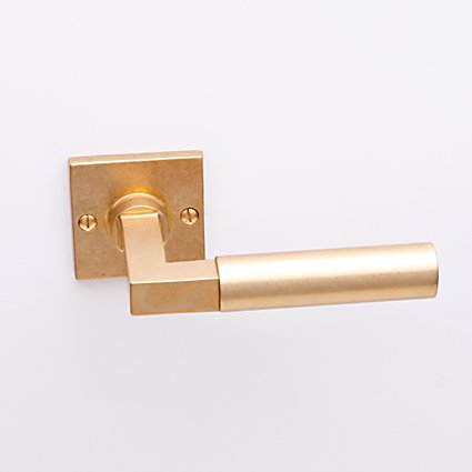 Deurkruk Bauhaus oud messing op vierkant rozet