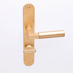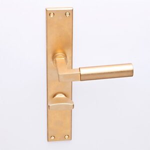 Deurkruk Poelzig oud messing op Bauhaus schild vrij- en bezet uitvoering Mies
