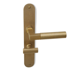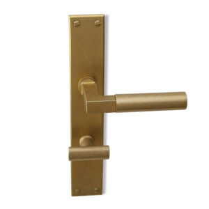 Deurkruk Poelzig oud messing op Bauhaus schild vrij- en bezet uitvoering