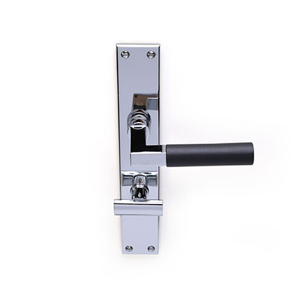 Idem als blind maar dan met een toilet/badkamersluiting, afstand midden krukgat tot midden slot. Vanwege het ebbenhout niet geschikt voor toepassing buiten.