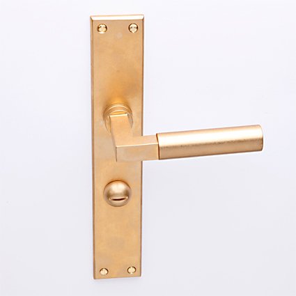 Deurkruk Bauhaus oud messing op Bauhaus schild vrij- en bezet uitvoering