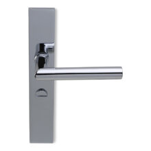 Idem als op haaks blind geveerd schild, maar dan met een toilet/badkamersluiting, afstand midden krukgat tot midden slot, stift 8mm.