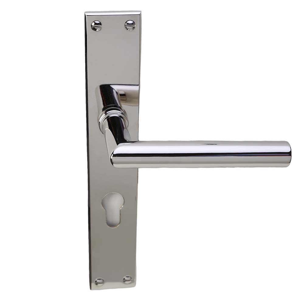Deurkruk Berlin nikkel op Bauhaus schild met cilindergat